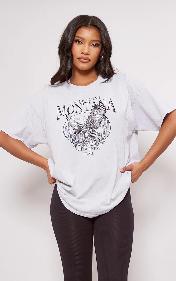 Add an edge to your off-duty ‘fit with this ash grey Montana logo oversized washed t-shirt. Brought to you in a washed ash grey material with a ‘Montana’ logo print, what more could you ask for? In a comfy oversized fit, this ash grey t-shirt is sure to be your go-to for those chilled days and beyond. Style with leggings, fresh kicks and an oversized blazer for an everyday look we just can’t get enough of.
