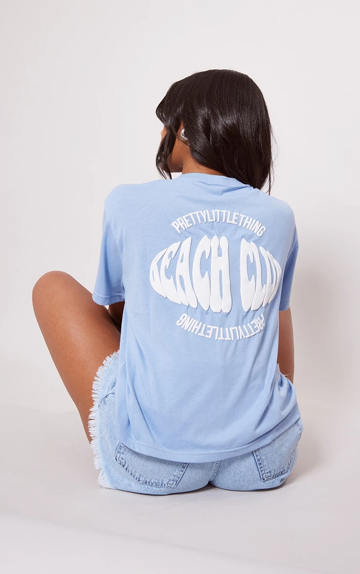 Comfort is key on your off-duty days doll and this baby blue beach club puff print t-shirt. Brought to you in a baby blue hue material with a ‘Beach Club’ puff print detail and a relaxed fit, how could you say no? This T-shirt is just what you need for those chilled days at home this season doll. Whatever your plans are, simply add denim shorts and chunky trainers for a fool-proof finish.
