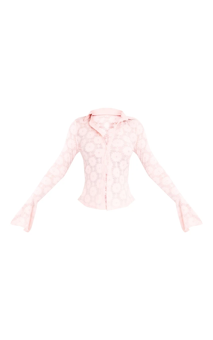 Channel all the luxe vibes this weekend with this baby pink lace fitted flare sleeve shirt. Its baby pink lace material adds a delicate touch to your look whilst its fit and flare sleeve design brings those glam vibes. This shirt is perfect for adding all those feminine feels to your look and we know you won’t be able to resist. Whatever your plans are this weekend, simply add tailored trousers, a mini bag and clear heels for a dreamy finish that will steal all the stares.