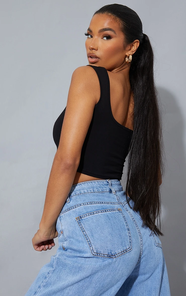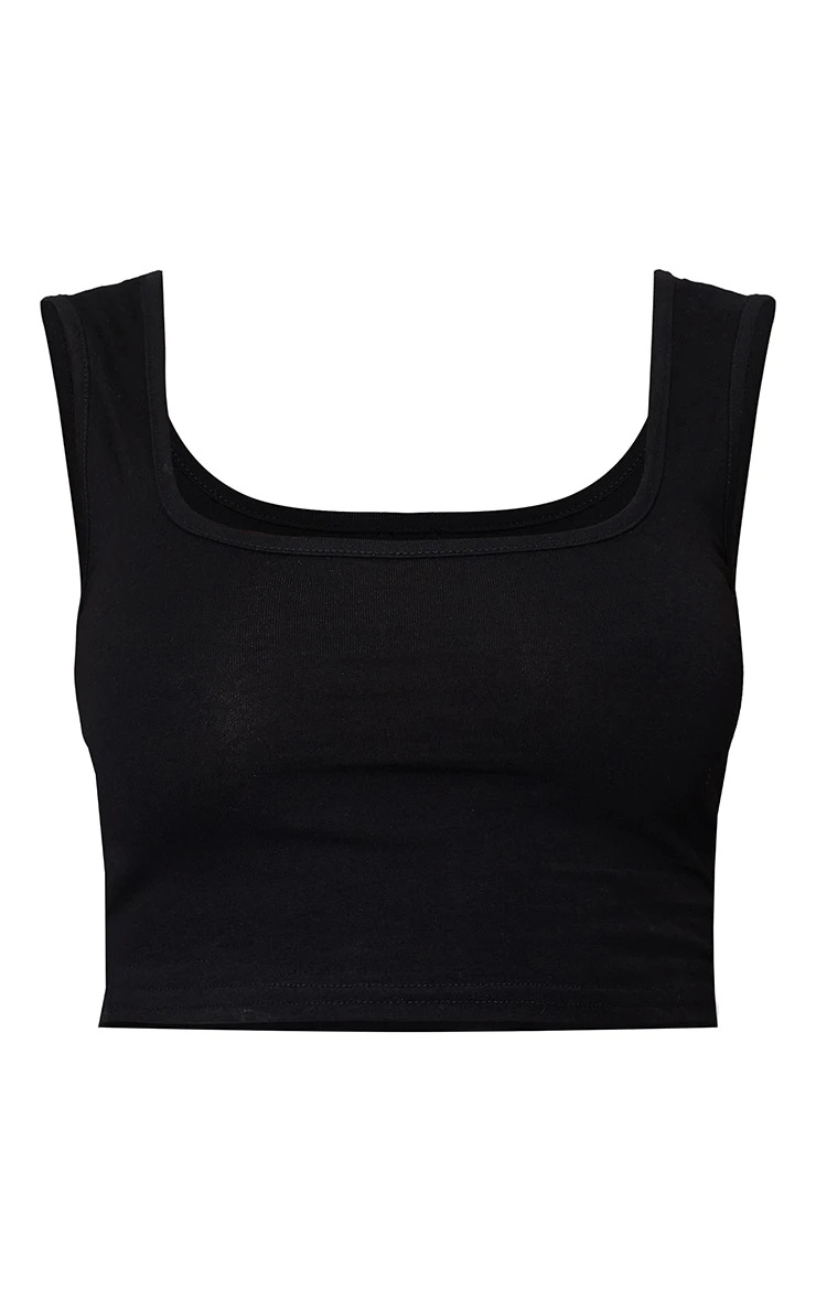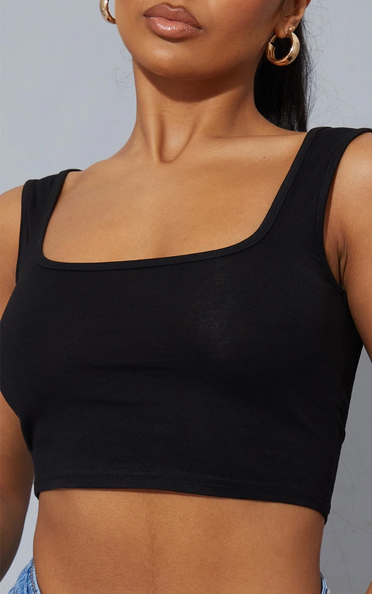 We are loving this top for your new season wardrobe. Featuring a Black Cotton Blend fabric with a square neckline and a cropped fit, what’s not to love? Style with comfy bottoms and kicks for a chilled off-duty look.