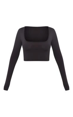 Meet your new season wardrobe essential with this top doll. Featuring a black slinky material with a square neckline and a cropped length. Pair with cargo bottoms, clear heels and a mini bag for an effortlessly chic vibe.