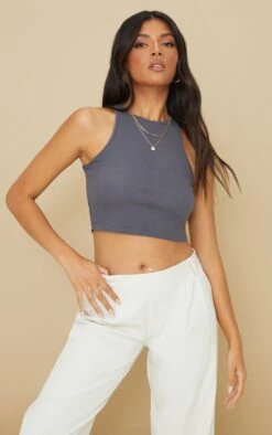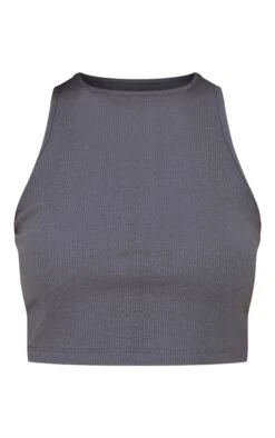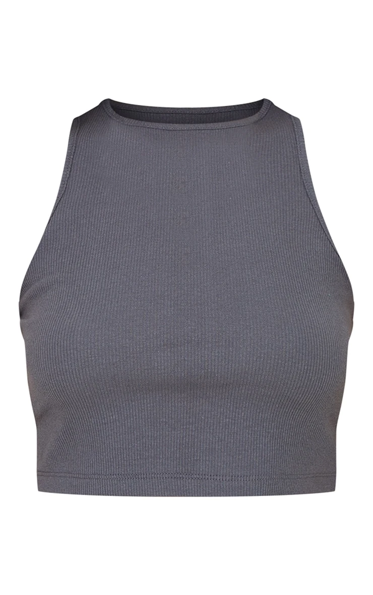 You are sure to serve up some serious style with this must-have top doll. Featuring a recycled charcoal rib material with a cropped fit and racer design, we are obsessed. for some extra style points pair with wide leg bottoms and comfy kicks.