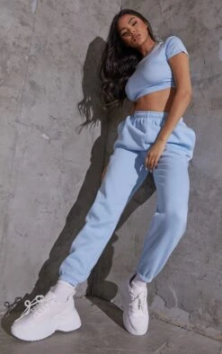 Your basic collection of tees just got cuter! Featuring a light blue jersey material, short sleeves and a cropped length, style this fitted tee with a pair of comfy bottoms and fresh kicks for a sporty vibe we are loving.