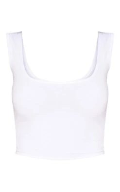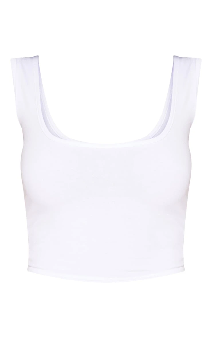 This basic crop top is everything but basic for your off-duty wardrobe girl. Featuring a white material with a square neckline and a cropped fit. Style this crop top with some bright joggers and barely-there heels for a look we are loving.