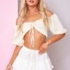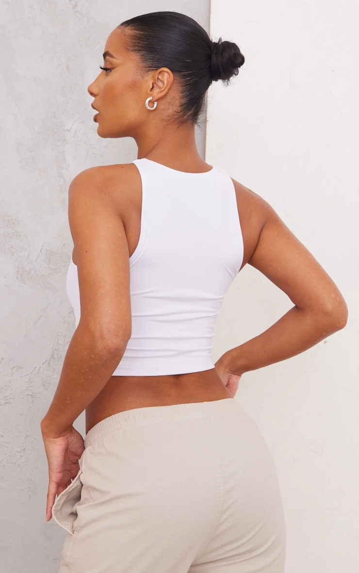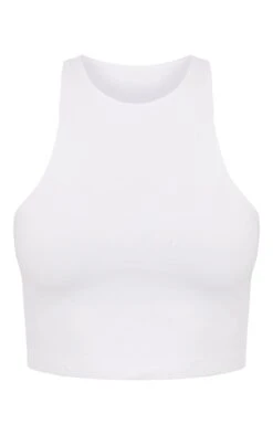 Get maxing out your wardrobe with this crop top. Featuring a white slinky material with a racer neck design and a cropped fit. Wear with cargo bottoms and heels for a look we are loving right now.
