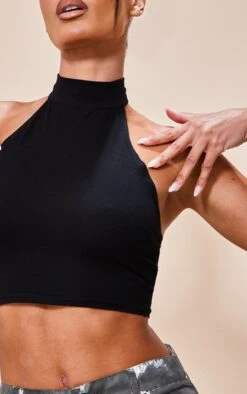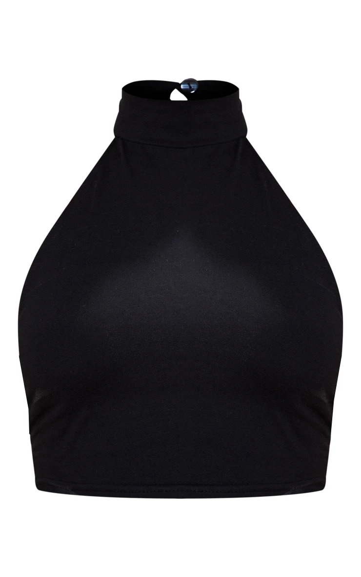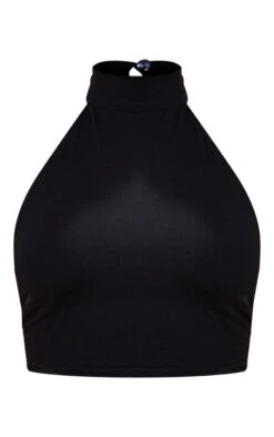 Level up your basics collection with this black cotton high neck halter crop top. Made from a black cotton material with a high neck, a halterneck design and a cropped length, how could you say no to this? This versatile crop top is perfect dressed up or down doll. Pair with your cargo jeans, box-fresh kicks and your everyday accessories for a blogger-worthy combo.