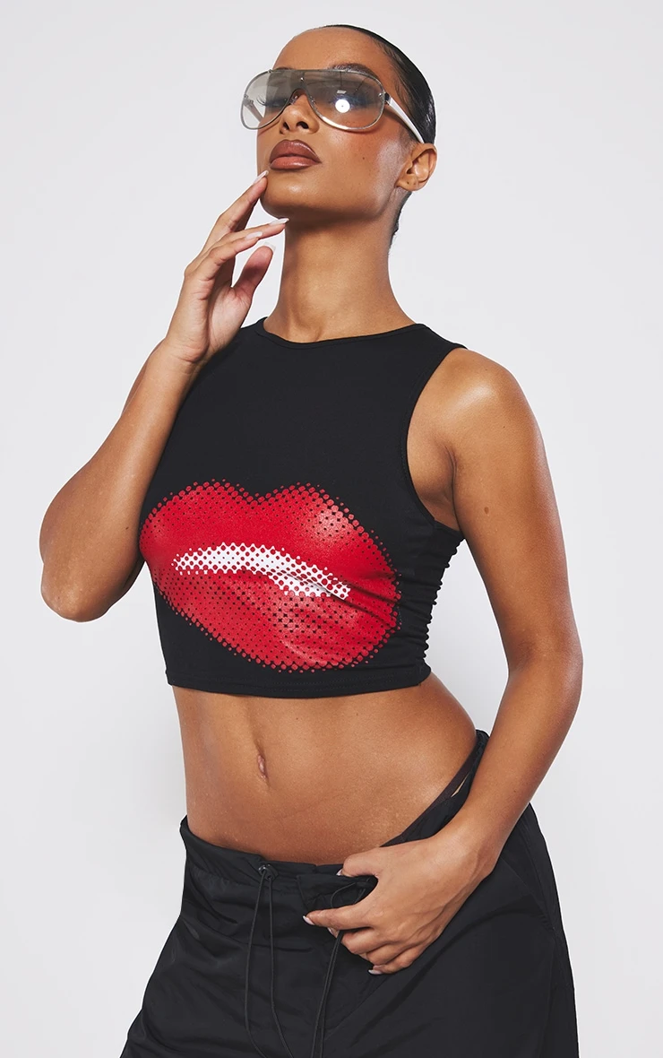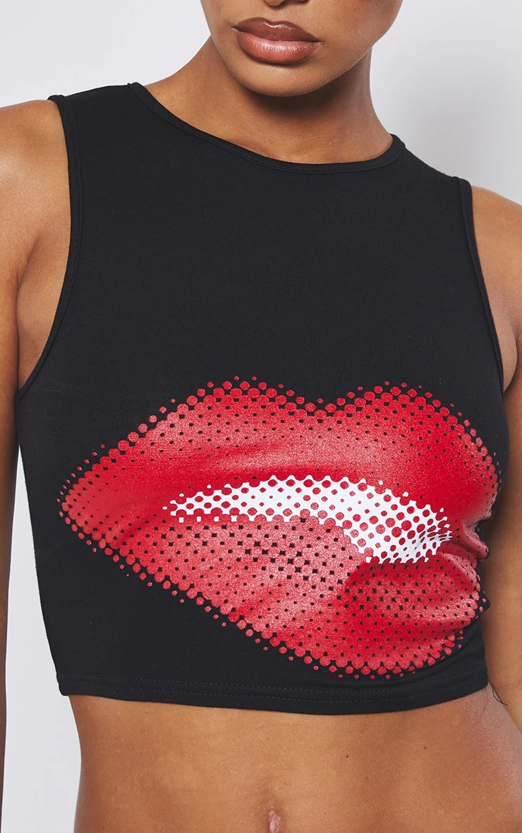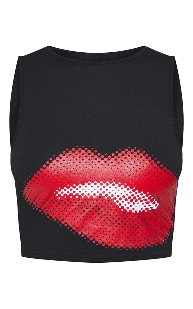 Work your styling techniques to make this black kiss print racer crop fit any occasion. With a black material and a kiss print design, you are sure to be nailing major trends this season. This racer crop is perfect for solving all of your ‘what to wear’ dilemmas, we are obsessed. Team with some wide leg trousers and a pair of comfy trainers to finish off the look.