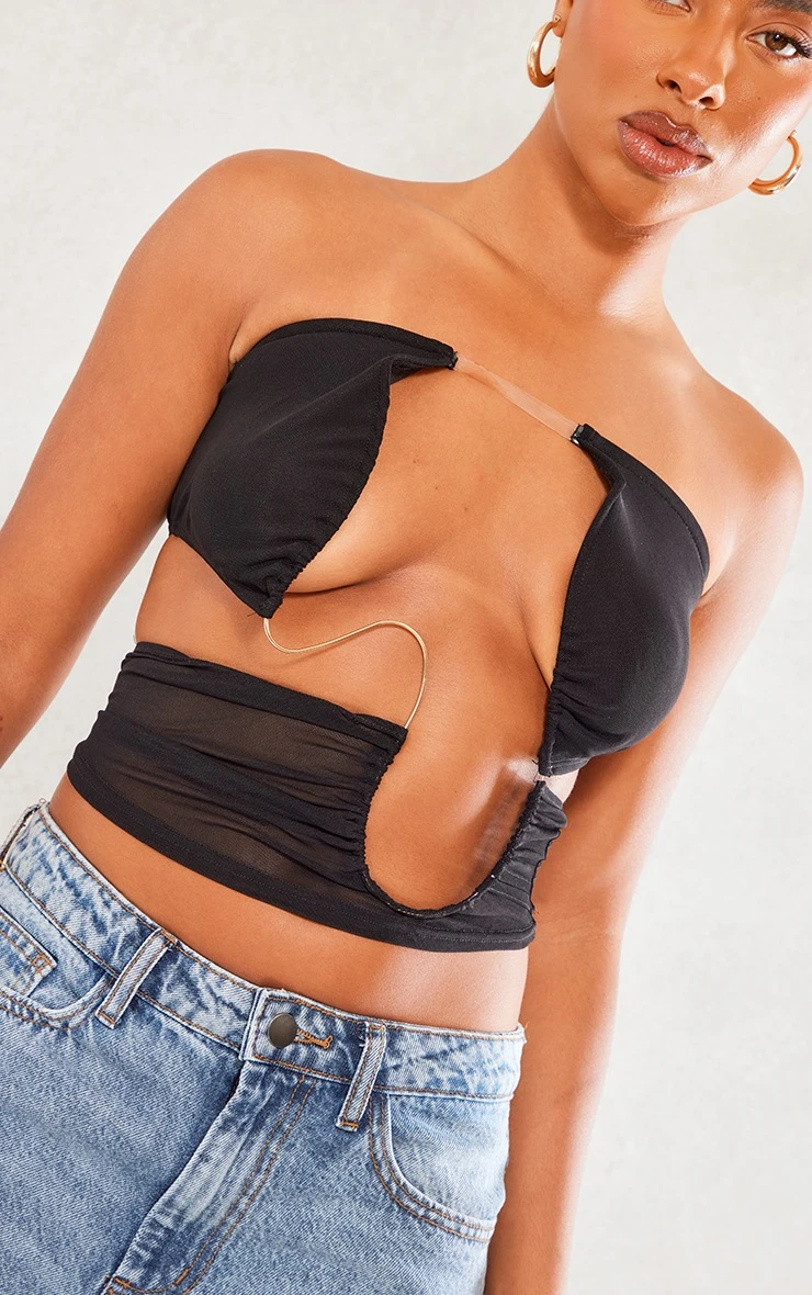 Add a little attitude to your weekend wardrobe with this black mesh wiring detail crop top, it is everything we are loving for your next night with the dolls and beyond. Made using a black mesh material with a wiring detail and a cropped length, how could you not be in love? Team this mesh crop top with blue jeans and your fave heels to nail the ‘jeans and a nice top’ brief, what are you waiting for?