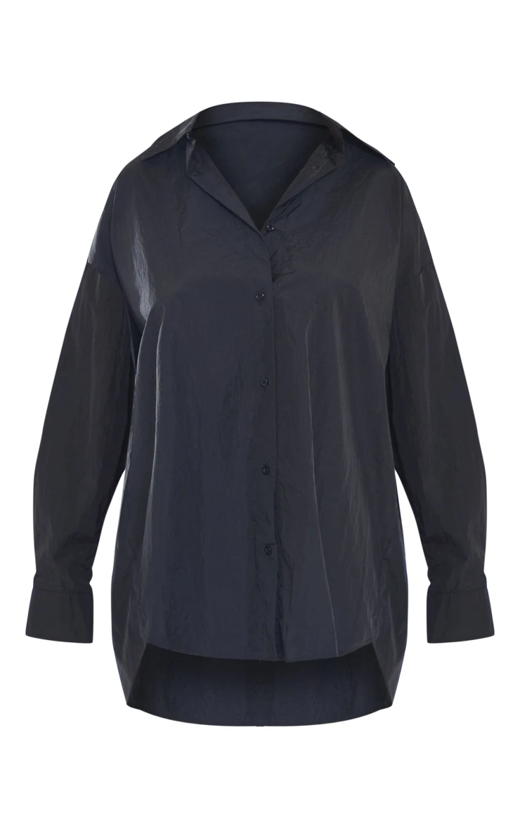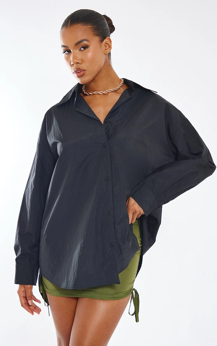 Your what to wear dilemmas have finally been found with this black parachute oversized long sleeve shirt. From day to night this women’s shirt will have you look your best. Made from a black material with an oversized fit and long sleeves, how could you say no? Style this effortlessly with lace-up heels and PU clutch bag for a weekend worthy combo.