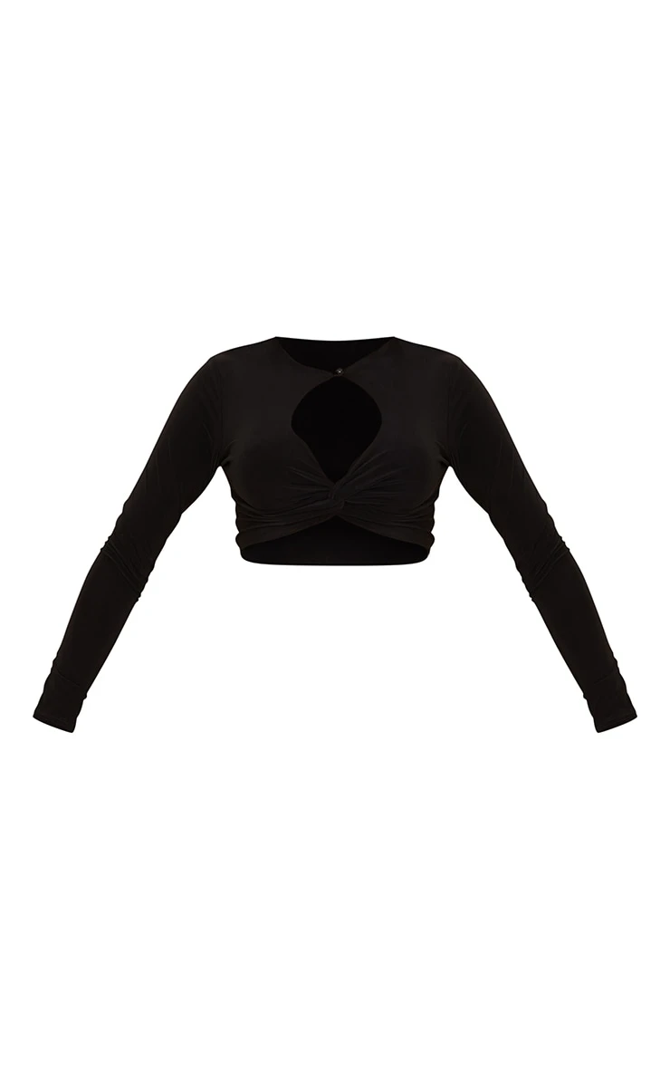 Your weekend outfit is finally sorted with this top. Featuring a black slinky material with a cross front design and key hole cut out detailing, what’s not to love? Wear with figure-hugging bottoms and heels for a look that will get heads turning.