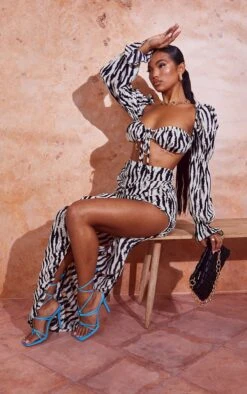 Add a chic vibe to your new-season wardrobe doll. Featuring a white woven fabric with cinched puff long sleeves and a tie front detail, we love this teamed with the matching skirt and mules to complete the look.