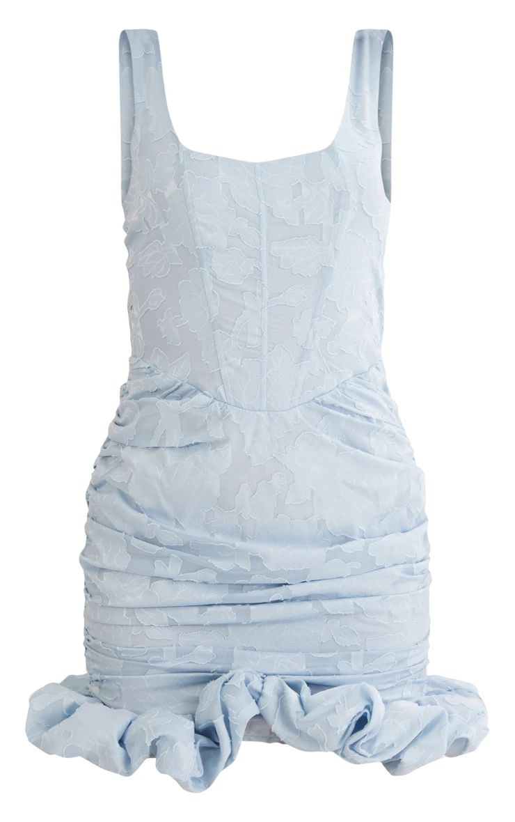 Add some luxe feels into your new season wardrobe with blue floral woven corset frill hem bodycon dress. Brought to you in a blue floral woven material with corset detailing, a frill hem and a figure-flattering fit, what more could you want? To complete the look effortlessly pair this dress with your clear high heels and accessories for a date night look with the dolls.