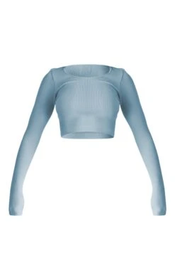 Banish all your what to wear everyday dilemmas with this blue grey structured contour ribbed round neck long sleeve crop. Brought to you in a blue grey ribbed material with a round neck, long sleeves and a cropped length, how could you resist? Pair this crop top with the matching leggings, your box-fresh kicks and accessories for a look that we can’t stop crushing on.