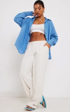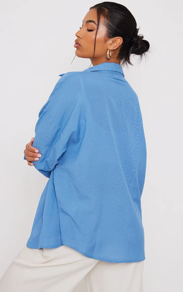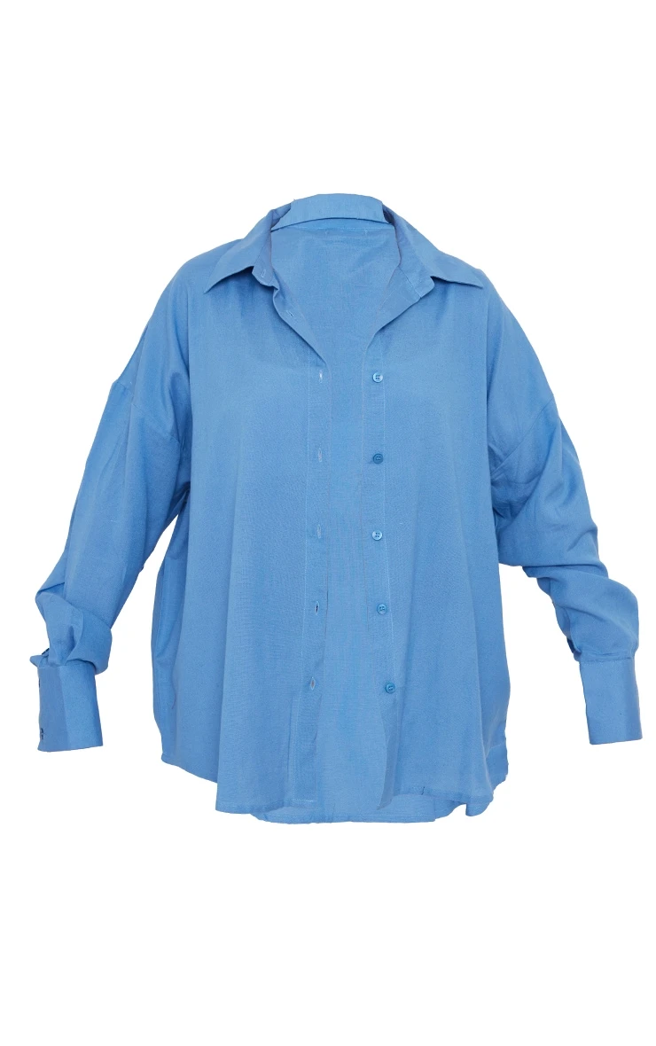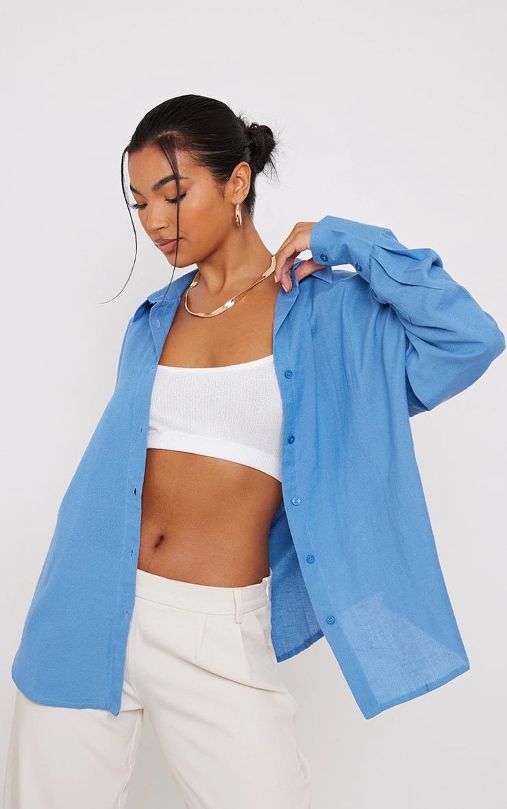 Add this shirt to any outfit of the day doll. Featuring a blue linen feel material with a button-up design and an oversized fit, what’s not to love? Style with a crop top and wide-leg bottoms for a style we are obsessing over.