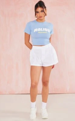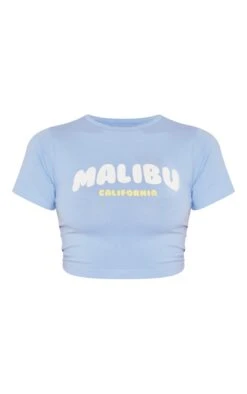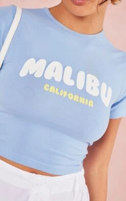 Add some statement hues into your wardrobe with this blue Malibu puff print cropped t shirt. This t shirt is brought to you in a blue material with a ‘Malibu’ puff print across the front that will have you feeling effortlessly chilled. Style this cropped t shirt with some comfy shorts, and cute shoulder bag and a pair of box fresh trainers to finish off the look everyone is obsessing over this season.