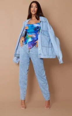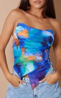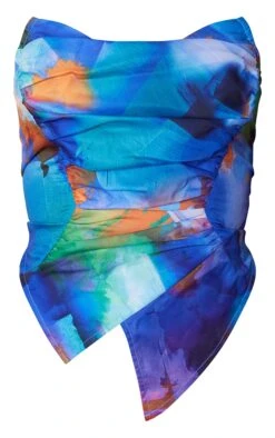 Inject some next-level prints into your weekend wardrobe with this corset top. Featuring a blue textured print woven material with an asymmetric hem and pointed neckline, we’re in love. Style with a mini skirt and heels for a night with the dolls.
