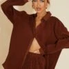 We can’t get enough of this must-have shirt doll. Featuring a blue woven material with an oversized fit, what’s not to love? Team with matching shorts and a bright bralet for a new season fit that will make heads turn.