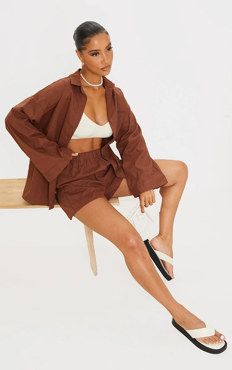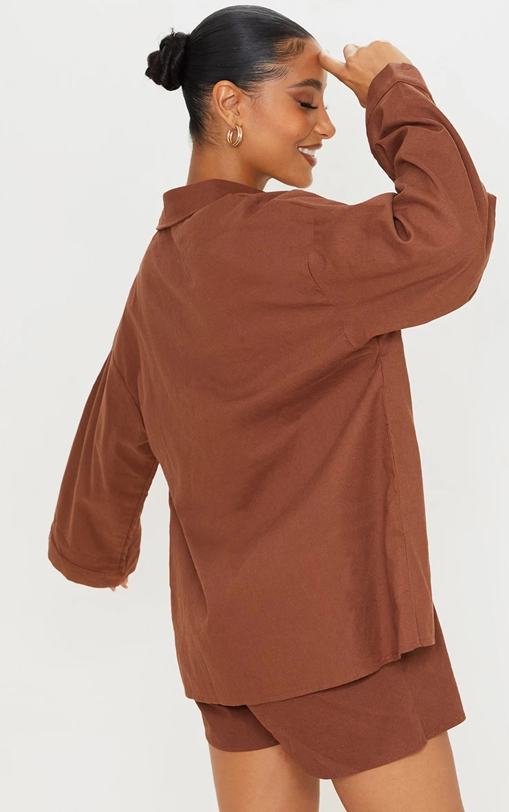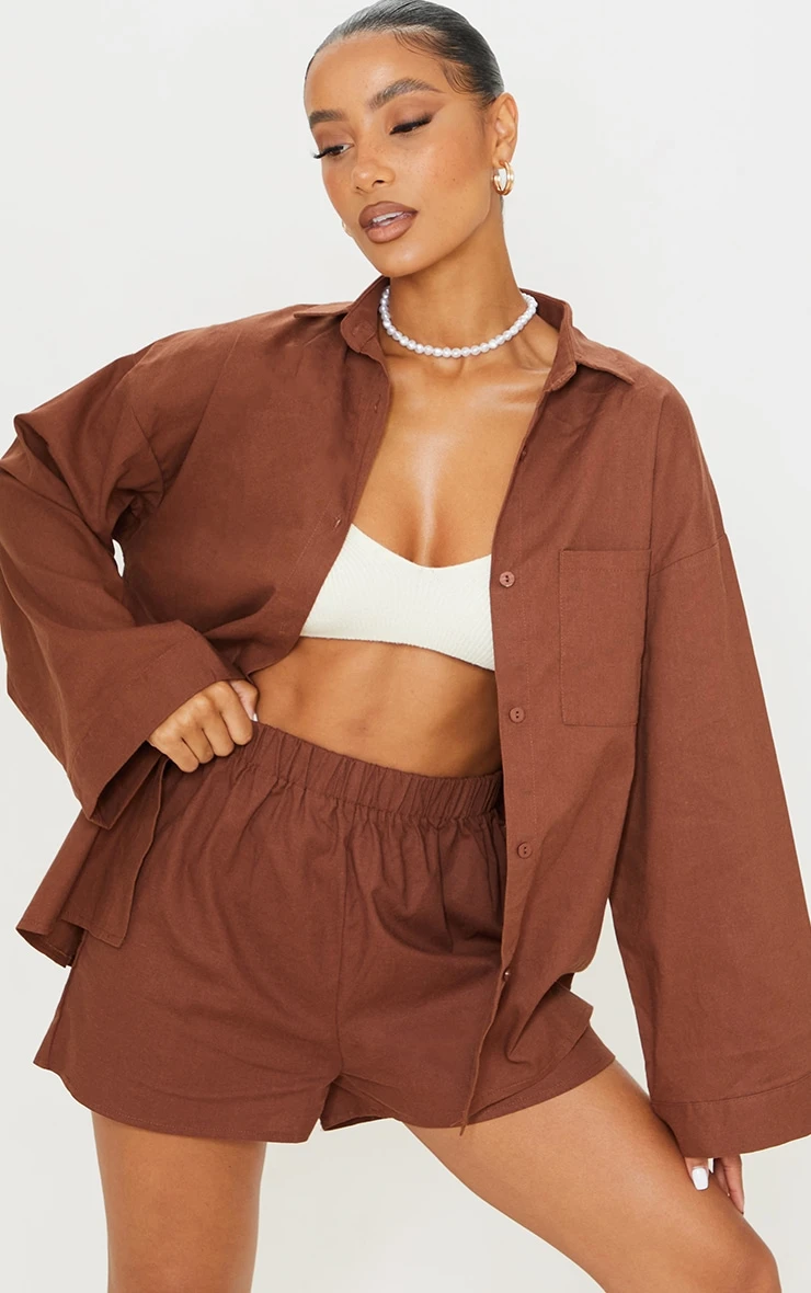 This shirt is sure to have all eyes on you doll. Feautirng a brown woven material with balloon sleeves and an oversized fit. Style with the matching shorts and sandals for a simple but chic look.