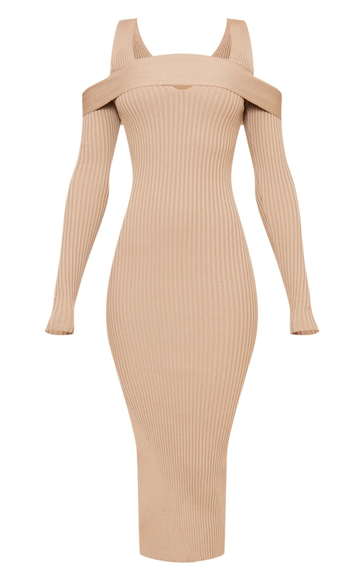 Channel all the luxe vibes into your new season wardrobe with this camel rib knit long sleeve fold over dress, it is perfect for your next date night and beyond. This dress includes a camel hue ribbed knit material with long sleeves and a fold over design, how could you resist? Wear with clear slip-on heels and gold hoop earrings for a look that will earn you all the style points.