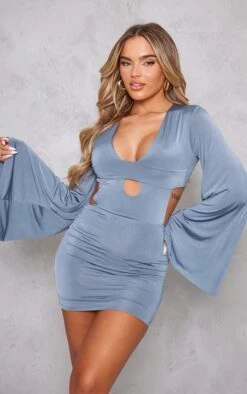Channel all the luxe vibes into your new season wardrobe with this charcoal slinky cut out flared sleeve bodycon dress, it is the perfect piece for your weekend plans and beyond. With a charcoal hue slinky material, a cut out design and flared sleeves you’re sure to fall in love doll. Pair with your fave accessories and slip-on heels for the ultimate chic flawless finish.
