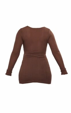 Bring a little attitude to your everyday wardrobe with this chocolate rib wrap cut out bodycon dress, get ready to earn all the style points doll. It is made with a chocolate hue ribbed material with a cut out design, a wrap over style and a figure-flattering fit, how could you say no? Team with chunky trainers and your fave accessories to have heads turning for all the right reasons.