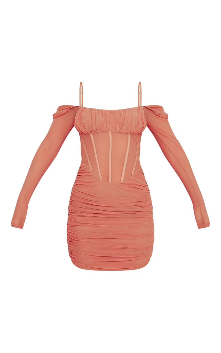 Got a special occasion pencilled into your diary? Then this clay mesh corset detail ruched bust bodycon dress is sure to answer all your styling dilemmas. It is made with a clay hue mesh material with a ruched busy design and a structured corset design, how could you not be in love? Wear with tie-up heels and statement gold accessories for a look that will have heads turning for all the right reasons.