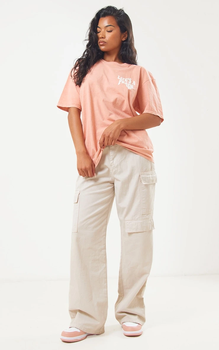 Get ready to brighten up your new season wardrobe with this coral washed life’s a peach printed t-shirt. Brought to you in a dreamy coral hue washed material and featuring a ‘Life’s a Peach’ printed design, this tee is sure to make a statement. In a seriously comfy relaxed fit, this t-shirt is a must-have for your off-duty wardrobe. Team with some on-trend cargo bottoms, fresh kicks and simple accessories for an effortless everyday look.