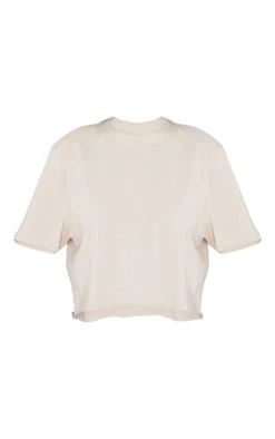 Make everyday styling simple with this t-shirt. Featuring a sand hue material with an oversized design, short sleeves and a cropped fit. Pair this with leggings and rubber boots for a catch up with the dolls.