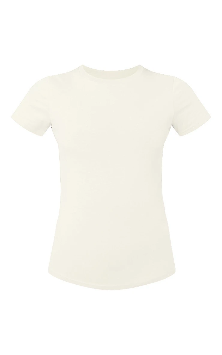 This tee is perfect for your everyday wardrobe doll. Featuring a cream cotton blend material with a crew neck design and a fitted style. Keep it casual and team this with comfy shorts, fresh kicks and a cap to complete the look.