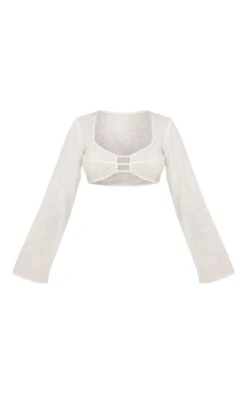 This cream linen look textured front detail long sleeve top is sure to be a staple in your new season wardrobe and beyond. Made from a cream hue linen look material with long sleeves, textured detailing and a cropped fit, what more could you want? Perfect for effortless AM to PM styling, we are obsessed. Style this textured top with a flattering midi skirt and flatform sandals for a simple yet chic everyday look.