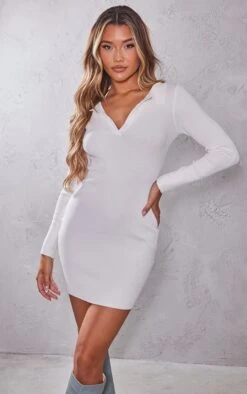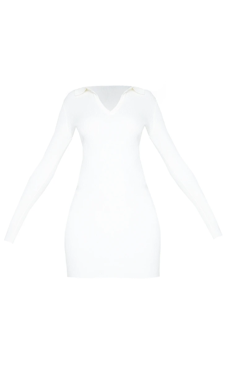 Add some fresh, feminine feels to your after-dark look with this dress. Featuring a cream ribbed knitted material with long sleeves and a bodycon fit, we’re in love. Add a layered necklace and chunky kicks for a look that will turn heads.