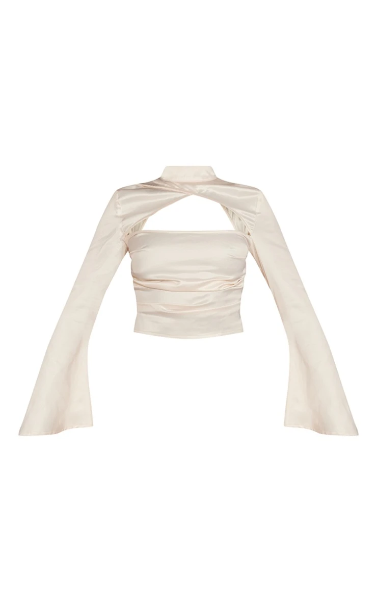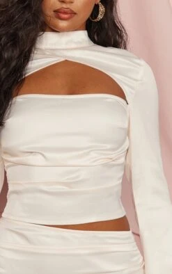 Channel all the glam vibes into your weekend wardrobe with this cream satin cut out ruched long sleeve corset top, you’re sure to have heads turning for all the right reasons. This top features a luxe cream satin material with a cut out design, ruched detailing and long sleeves, we’re seriously obsessed. Style with the matching skirt, slip-on strappy heels and gold hoop earrings for the perfect dreamy date night fit.
