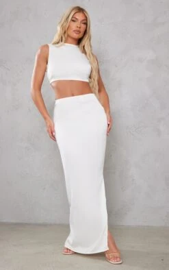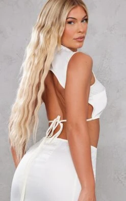 Channel all the luxe vibes into your new season wardrobe with this cream satin tie waist open back crop top, you’re sure to have heads turning for all the right reasons. This top is made with a cream satin material with a tie waist design and an open back style, how could you say no? Wear with the matching skirt, clear heels and your fave accessories for a dreamy date night look.
