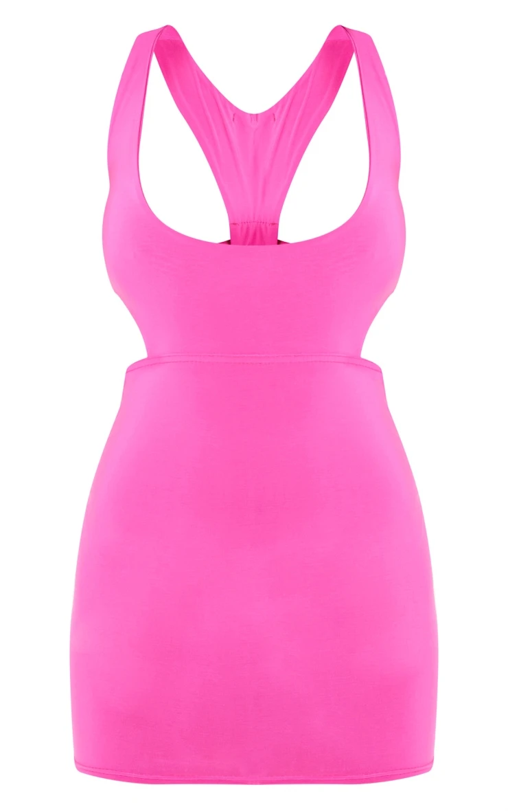 Dare to stand out from the crowd in this show-stopping hot pink slinky cut out back racer detail bodycon dress, you’re sure to have heads turning for all the right reasons. It features a statement hot pink slinky material with a cut out back design and a figure-flattering fit that is sure to show off your confident side, how could you say no? Team with your fave heels and simple accessories for a look that will bring all the drama.