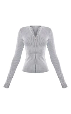 Amp up your outfit of the day with this top. Featuring a two tone light grey material with a longline fit length and a zip-up fastening, what’s not to love? Style this with matching bottoms and some comfy kicks for a simple but chic look.
