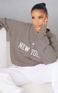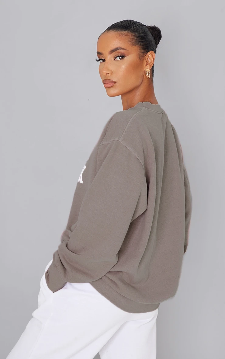 Sweatshirts are a must for those off-duty days doll. Featuring a mocha material with a ‘New York Downtown’ slogan print, how could you not love? For an effortless combo team with some comfy bottoms and your fave kicks.