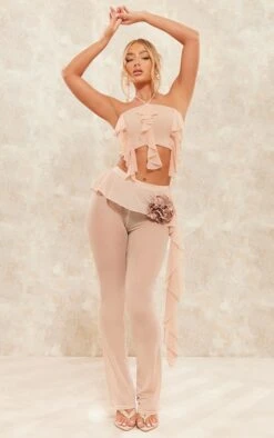 The weekend is here doll and this natural stone mesh halterneck frill crop top is the answer to all your what-to-wear dilemmas. With a natural stone mesh material, a halter neckline, and frill detail, how could you resist? This crop top is sure to gain all the compliments this weekend. Simply pair this crop top with matching hue trousers, clear heels and gold accessories for a statement finish.