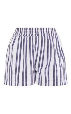Hit refresh on your off-duty wardrobe with these navy textured linen look stripe oversized linen shorts. Made from a navy striped textured linen look material with a high waist and a relaxed fit, what’s not to love? These shorts are just what you need for the new season and any upcoming vacays you might have planned. Style effortlessly with the matching shirt, a bralette, and sandals for that summer-ready finish.