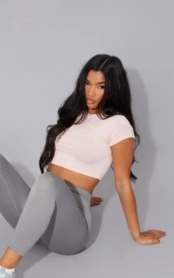 Your wardrobe essential isn’t complete without this t-shirt. Featuring a nude fabric with short sleeves and a cropped fit, just team with the matching bottoms and slides for an all-nude look we’re loving.