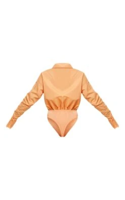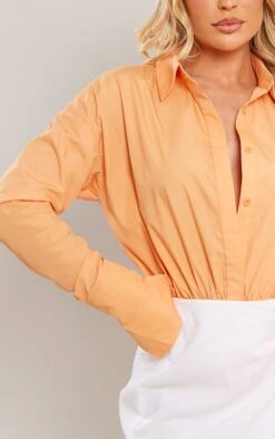 Switch up your style with this orange oversized shirt bodysuit. This bodysuit is brought to you in an orange material that will have you standing out from the rest. With an oversized fit, and a shirt style, what’s not to love? This bodysuit can be dressed up or down depending whatever your plans. Team with a midaxi skirt and some of your fave accessories to have all eyes on you whatever the occasion.