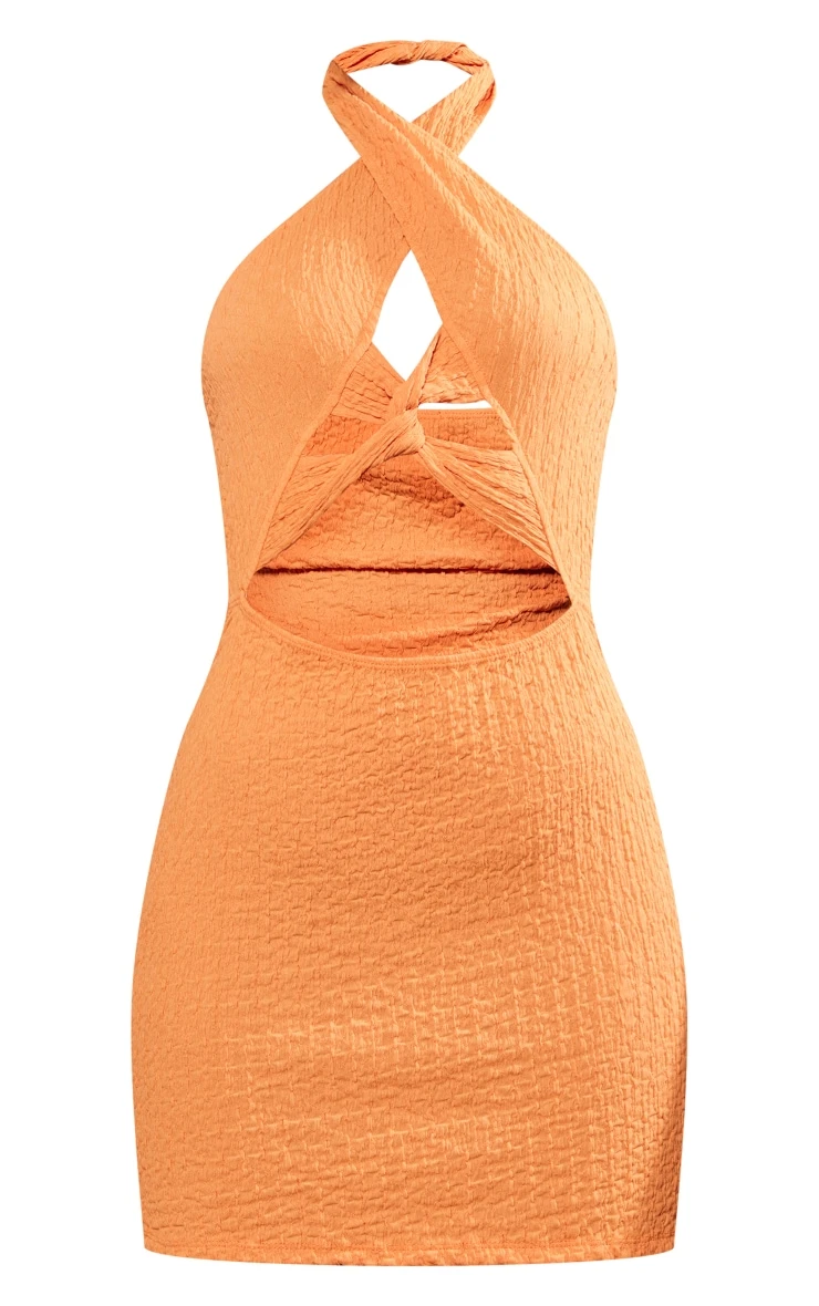 Got a special occasion penciled into your diary? Well we’ve got you covered with this orange textured halter twist detail bodycon dress. Brought to you in an orange textured material with a halterneck design, twist detailing and a figure-admiring fit, how could you say no? This dress will have you setting trends wherever you step foot. For a flawless finish team this with your trusty high heels and accessories. It’s everything we’re loving right now.