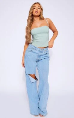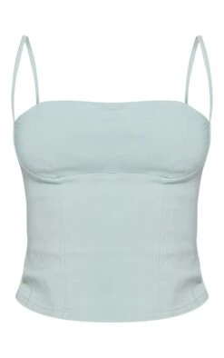 Nail that jeans and a nice top dress code for brunch with the dolls with this pastel green stretch woven spaghetti strap bust detail crop top. Made from a pastel green stretch woven material with spaghetti straps and bust detail, what’s not to love? We are loving this top for its endless styling possibilities and ability to take any look from day-to-night. Pair with denim jeans, clear heels and gold accessories for a flawless finish which is sure to impress.