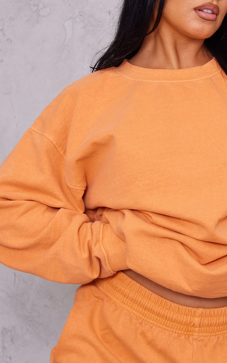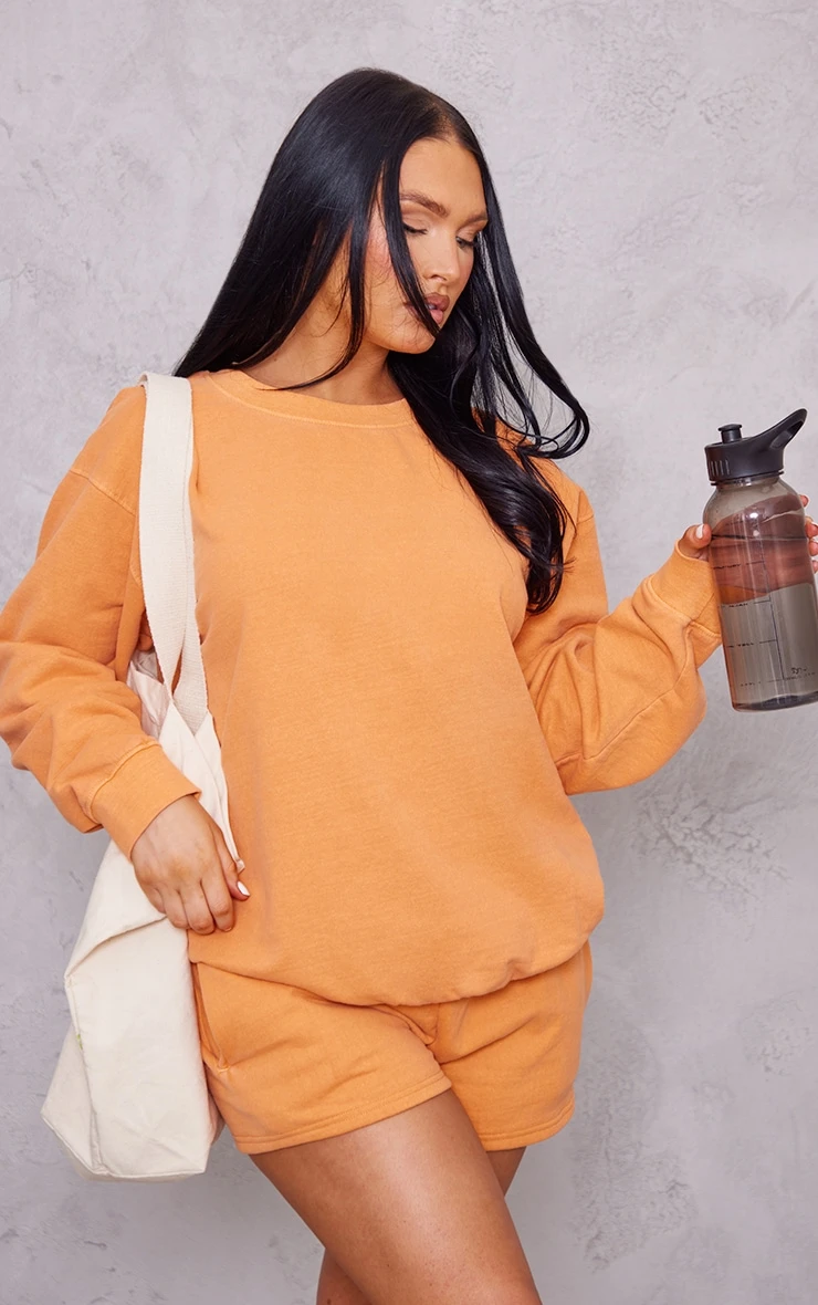 Level up your off-duty wardrobe with this pastel orange washed oversized sweatshirts. Brought to you in an pastel orange washed material with an oversized fit, how could you say no? Whether it’s a chilled day at home or you’re running your everyday errands this women’s sweatshirt is the one for you. Level up the look and add the matching shorts, box-fresh kicks and your everyday essentials for the ultimate combo.