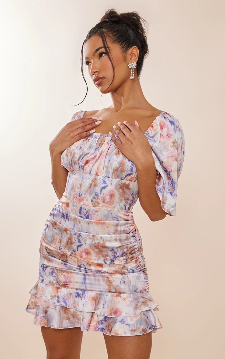 Got a special occasion coming up doll? This pink tie dye print satin ruched side frill hem bodycon dress is sure to bring all the glam vibes. It is made with a pink tie dye print satin material with a ruched side design, frill hem detailing and a figure-flattering fit, what’s not to love? Style with clear slip-on heels and statement accessories for a look we can’t get enough of.
