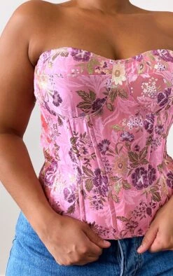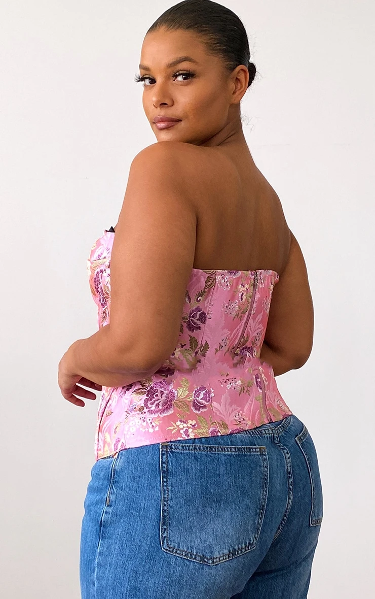 Add this on-trend top to your weekend outfit for a combo that will have all eyes on you. Featuring a pink satin fabric with a floral print and a corset design, team this with jeans and heels for the perfect date night look.