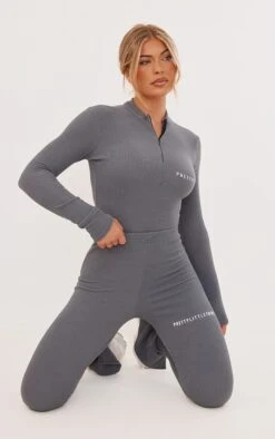 Switch up your style game with this unreal bodysuit. Featuring a charcoal crinkle rib material with a half zip fastening and a figure-hugging fit, what’s not to love? Wear with the matching bottoms and chunky kicks for a fresh finish.