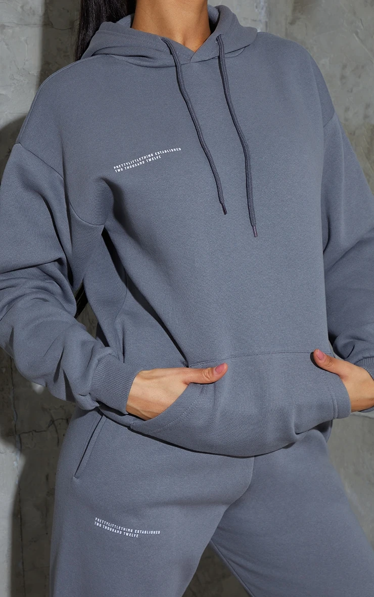 This hoodie is sure to be a staple in your new season wardrobe doll. Featuring a charcoal grey hue material with long sleeves and ‘PrettyLittleThing’ logo detailing, we’re in love. Wear with comfy bottoms and chunky kicks for a vibe we’re obsessed with this season.