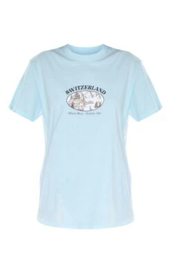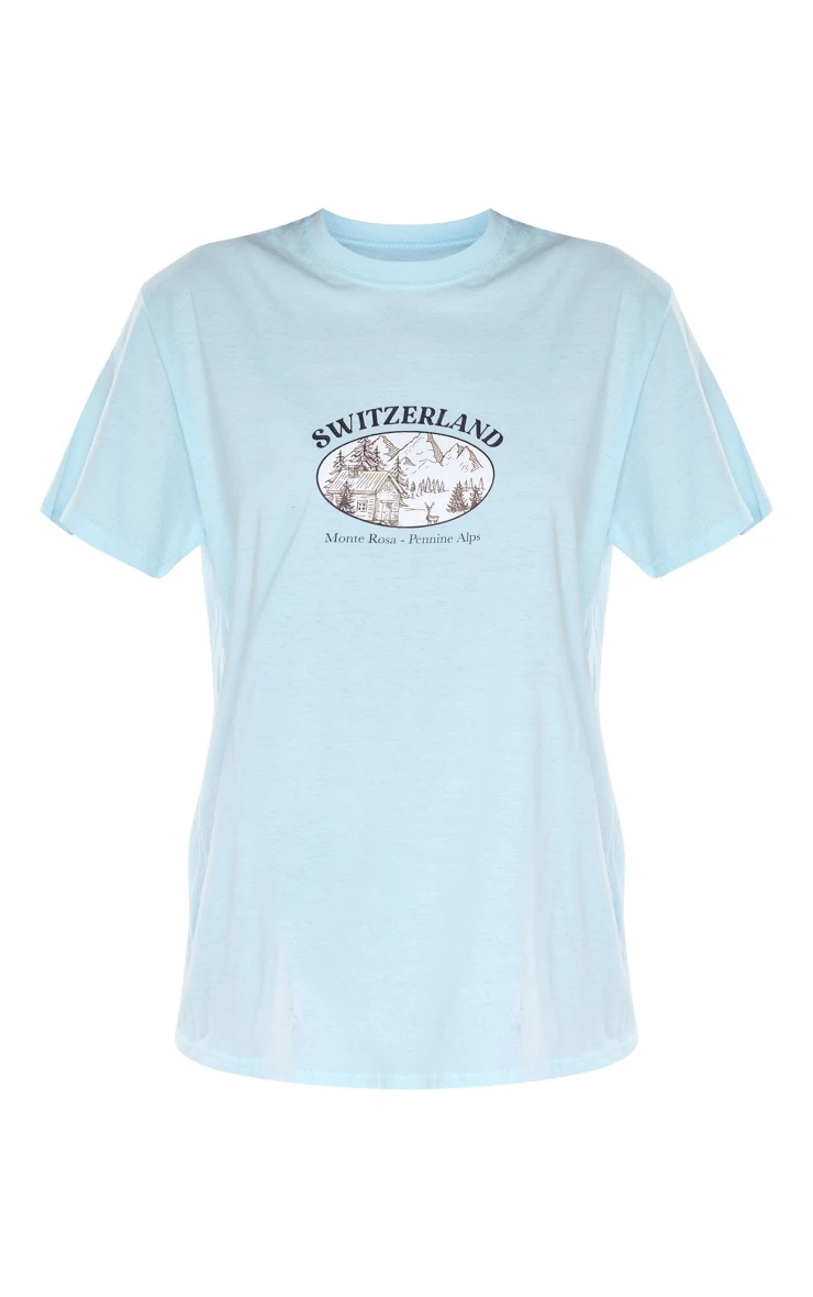 You can never have too many tees in your off-duty collection, that’s why this PrettyLittleThing pale blue Switzerland mini print t shirt. This t shirt is brought to you in a pale blue material, with a ‘Switzerland’ mini print across the front, you are sure to earn all the styling points this season. Team with some wide leg trousers and a cute bag to elevate the look to new heights.