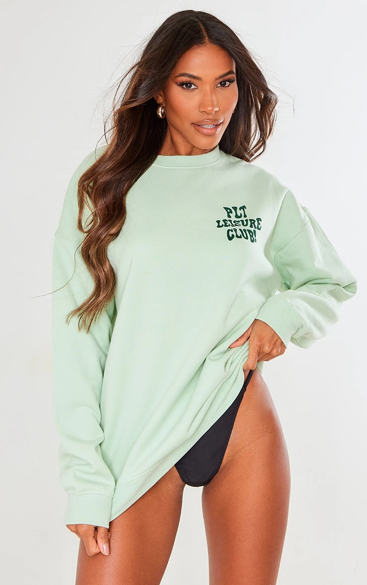 Add some dreamy hues to your new season wardrobe with this PrettyLittleThing sage leisure club front and back print sweatshirt. Brought to you in a sage hue material with a ‘prettyLittleThing Leisure Club’ print on the front and back, what more could you need? In a seriously comfy fit, we just can’t get enough. Wear with your fave bikini and sandals for the perfect cover up on those poolside days and beyond.