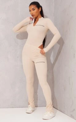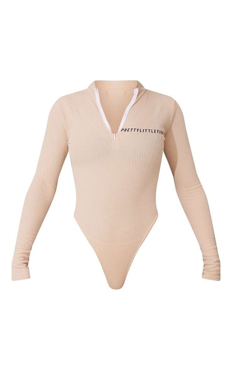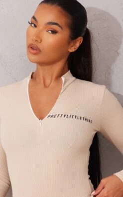 This bodysuit is perfect for those off-duty days. Featuring a stone crinkle rib material with a ‘PrettyLittleThing’ logo, a half zip design and long sleeves. For a chilled everyday combo, team this with the matching leggings and fresh kicks.